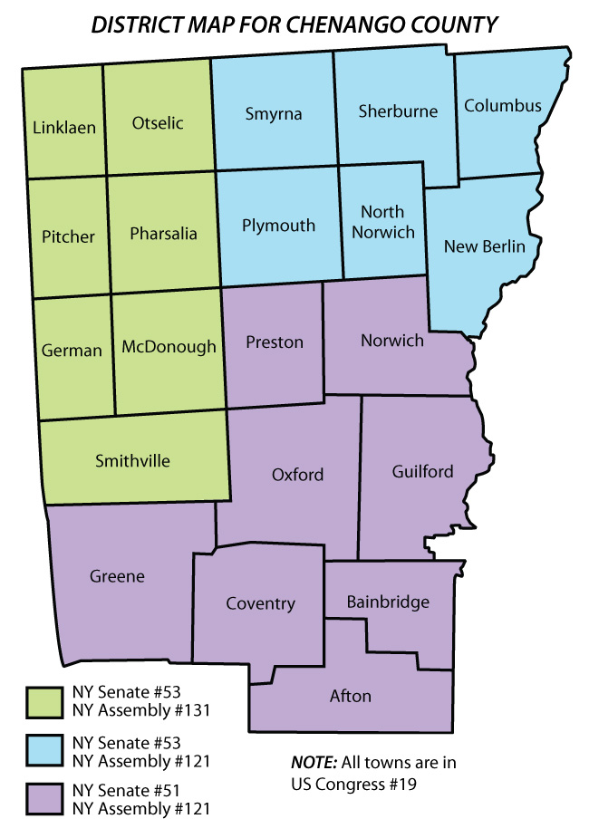 County Directory (PDF; includes contact information for local, state and federal elected officials) - https://www.chenangocountyny.gov/DocumentCenter/View/1495/County-Directory-PDF